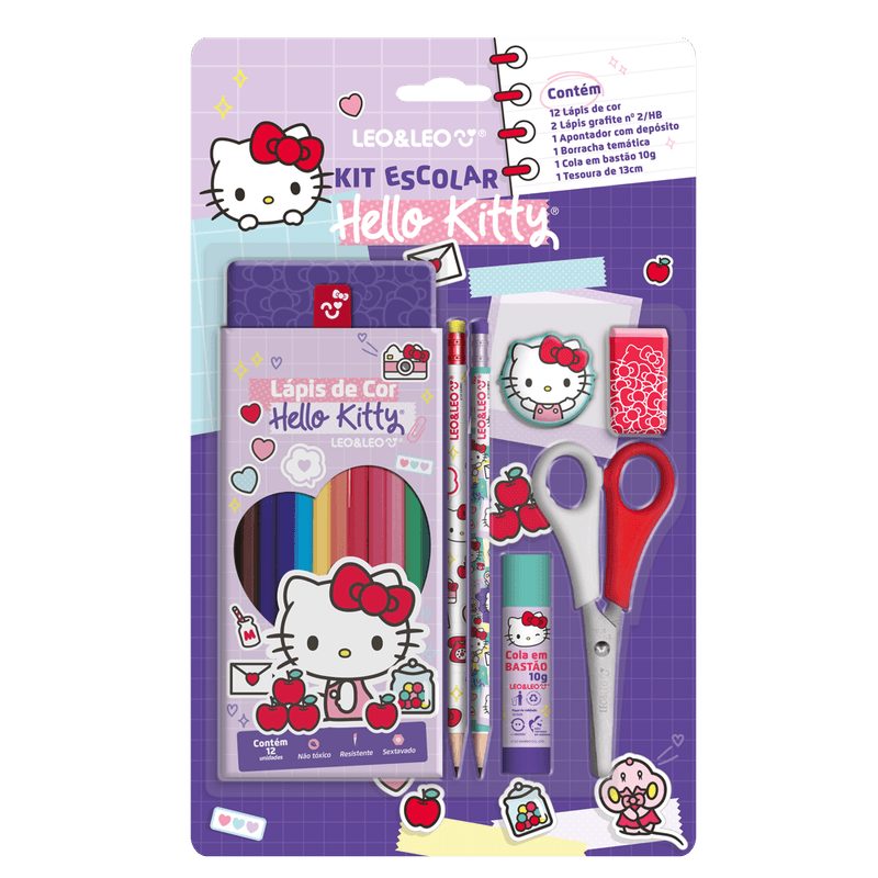 O Kit Lápis de Cor Hello Kitty Leo e Leo é atóxico e veio para ser a companhia ideal e de todos os momentos de aprendizagem da criançada.
