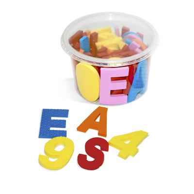 Confeccionado em E.V.A. Composto por 01 jogo de alfabeto completo, 02 jogos de vogais e 01 jogo de números de 0 a 9, com tamanhos aproximados de 4 x 7 cm.