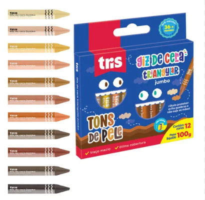 O giz de cera JUMBO auxilia no aprendizado e estimula a criatividade, possui rótulo protetor que não suja as mãos e corpo triangular, que é ideal para as mãozinhas pequenas. É pré-apontado, de traço macio, ótima cobertura e atóxico. Agora em tons de pele!