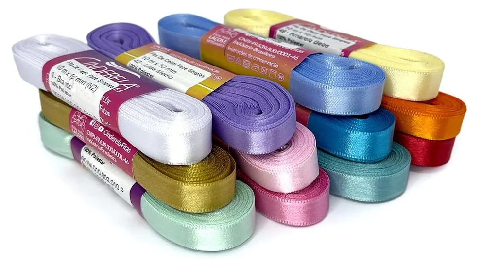 Fita de cetim utilizada para diversas finalidades, como laços, decoração de ambientes, artesanato, bordado em ponto-cruz, etc. Fita de excelente qualidade, com lindas cores, que deixarão seu trabalho muito mais prático e bonito.