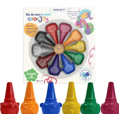 O Giz de Cera Encaixa no Dedo Color Joy foi desenvolvido especialmente para os pequenos que estão começando a explorar o mundo das cores. Seu formato anatômico permite encaixar no dedo com facilidade, oferecendo conforto e melhor controle durante o uso — ideal para as primeiras experiências de desenho e pintura.