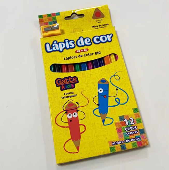Lápis de Cor Triangular Big C/12 Cores + Apontador – Gatte Kids Make+