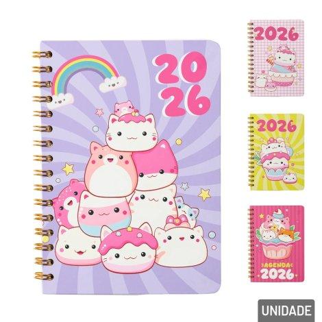 A Agenda 2026 com 168 folhas traz capa espiral com estampa de gatinho, detalhes em glitter, elástico para prender a capa e fita para marcar a página. Ideal para anotar compromissos, tarefas e pensamentos do dia a dia. Um item prático e cheio de personalidade. Com páginas espaçosas e organização funcional, é perfeita para uso escolar, profissional ou pessoal. A capa resistente garante durabilidade ao longo do ano. Um toque encantador e funcional para sua rotina!