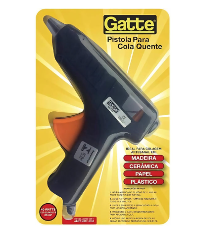 A Pistola para Cola Quente é ideal para uso profissional e artesanal. Indicado para aplicação e pequenos reparos em superfícies como madeira, MDF, plástico, cerâmica, tecido, papel, papelão, EVA e etc. É uma ferramenta muito importante para quem precisa fazer pequenos reparos e para uso em diferentes tipos de artesanato, pois não enruga não mancha e não faz sujeira, além de ser de fácil manuseio.