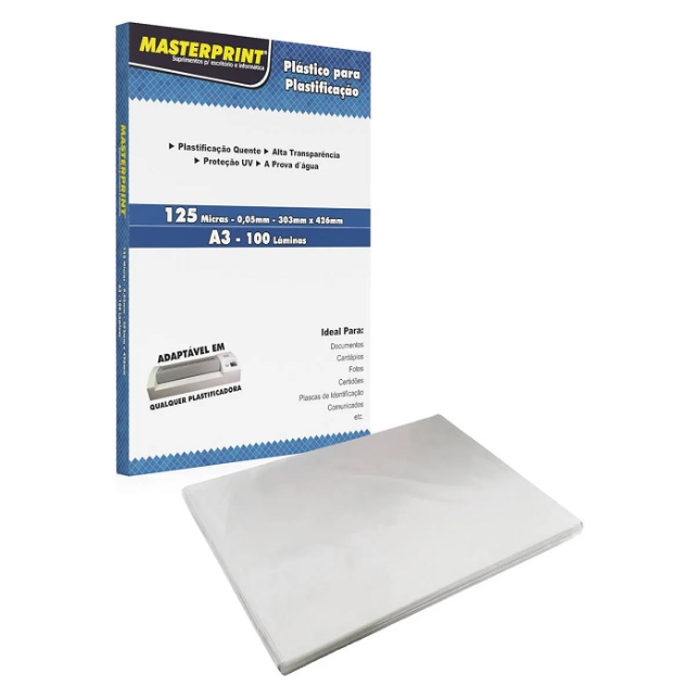 Plastificacao (Polaseal) A3 100 Folhas 125micras 0,05 Espessura Master Print