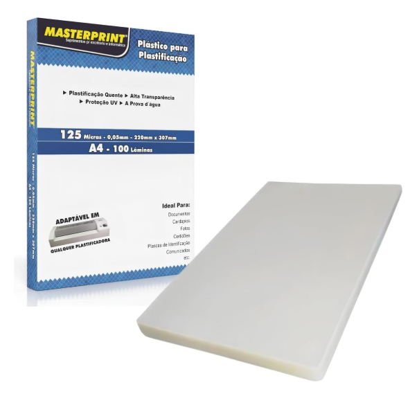 Plastificacao (Polaseal) A4 100 Folhas 125micras 0,05 Espessura Master Print