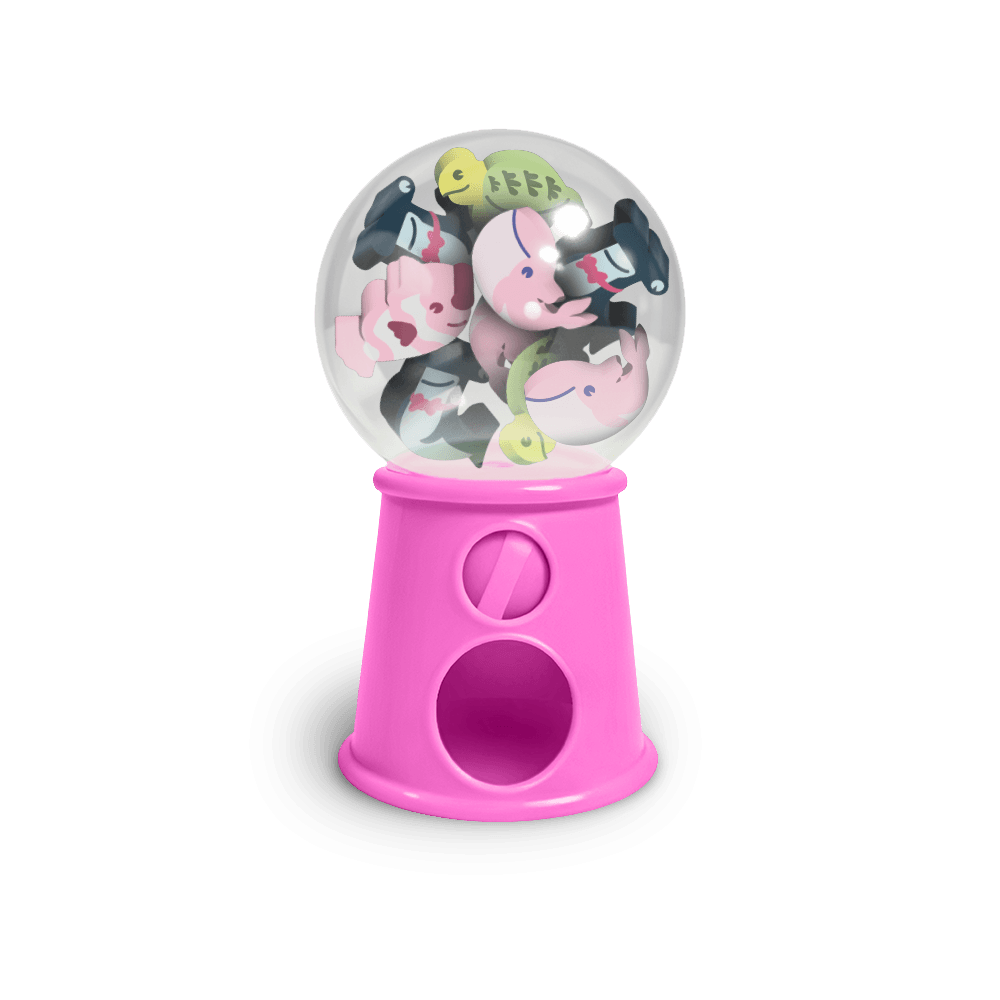 Além de muito fofo, o baleiro vem com 12 mini borrachas em 4 estampas colecionáveis de animais marinhos (tartaruga, peixe, tubarão e baleia). Basta girar a roletinha para liberar a borrachinha e ver qual que sai! É diversão na certa!