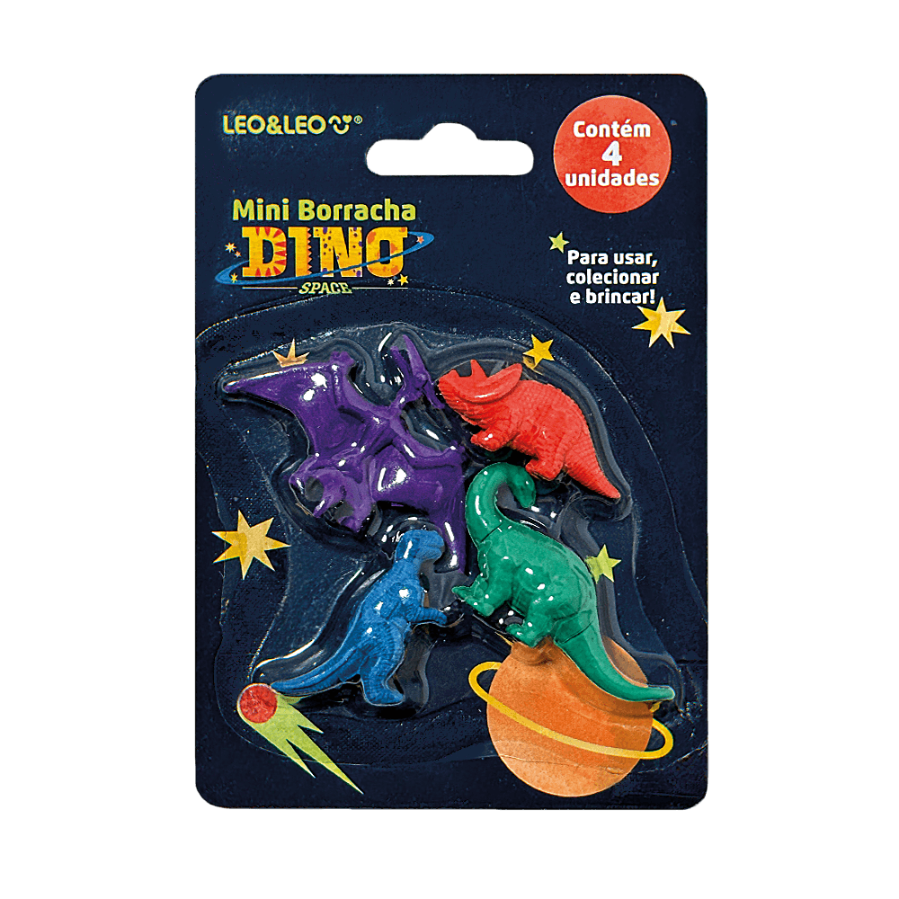 Ter borracha sem graça é do tempo da pré-história. Agora, para quem é fera nos estudos, o momento é ter Mini Borracha Formato Dino – Caixa com 12 Blisters Cores Sortidas Leo&Leo.