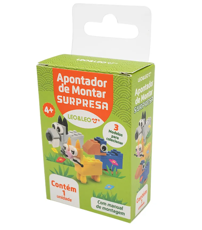 Com design diferenciado em blocos de montar animais, colorido e atrativo, este apontador estimula a criatividade, concentração e a coordenação motora dos pequenos.